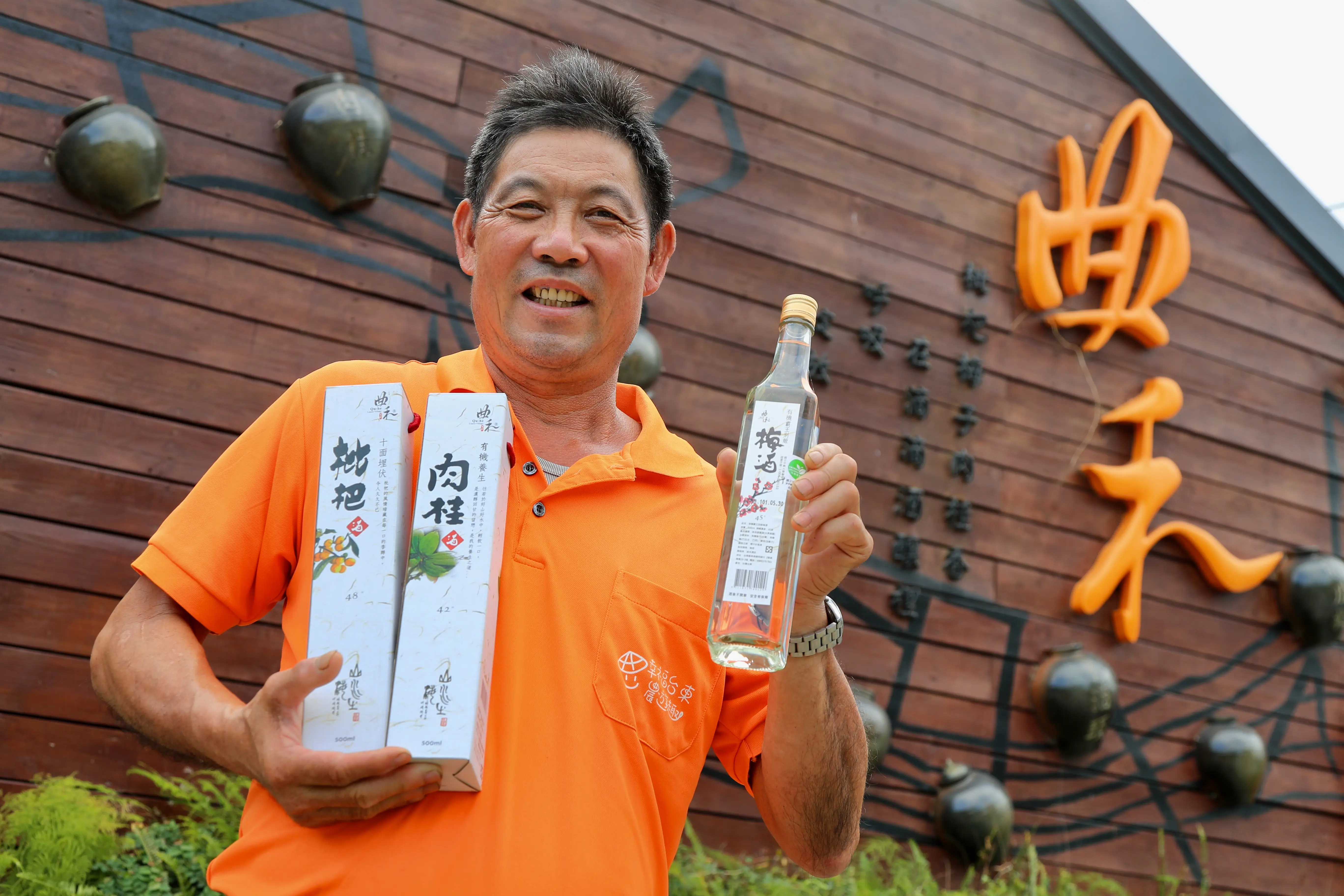 當時廖家大約有3.8公頃梅園,周邊鄰居也大多是梅子農,產業崩盤瞬間大家失去經濟收入,為了自救,梅農們合作組成產銷班,開始製作脆梅、梅酒等加工品,廖坤郎也在政府鼓勵下於民國90年開始籌備,並於民國96年曲禾酒莊正式開幕,是台東縣第一家酒莊,廖農夫也從一個原本滴酒不沾的梅子農,變成現在是賣酒的果實酒品酒師。