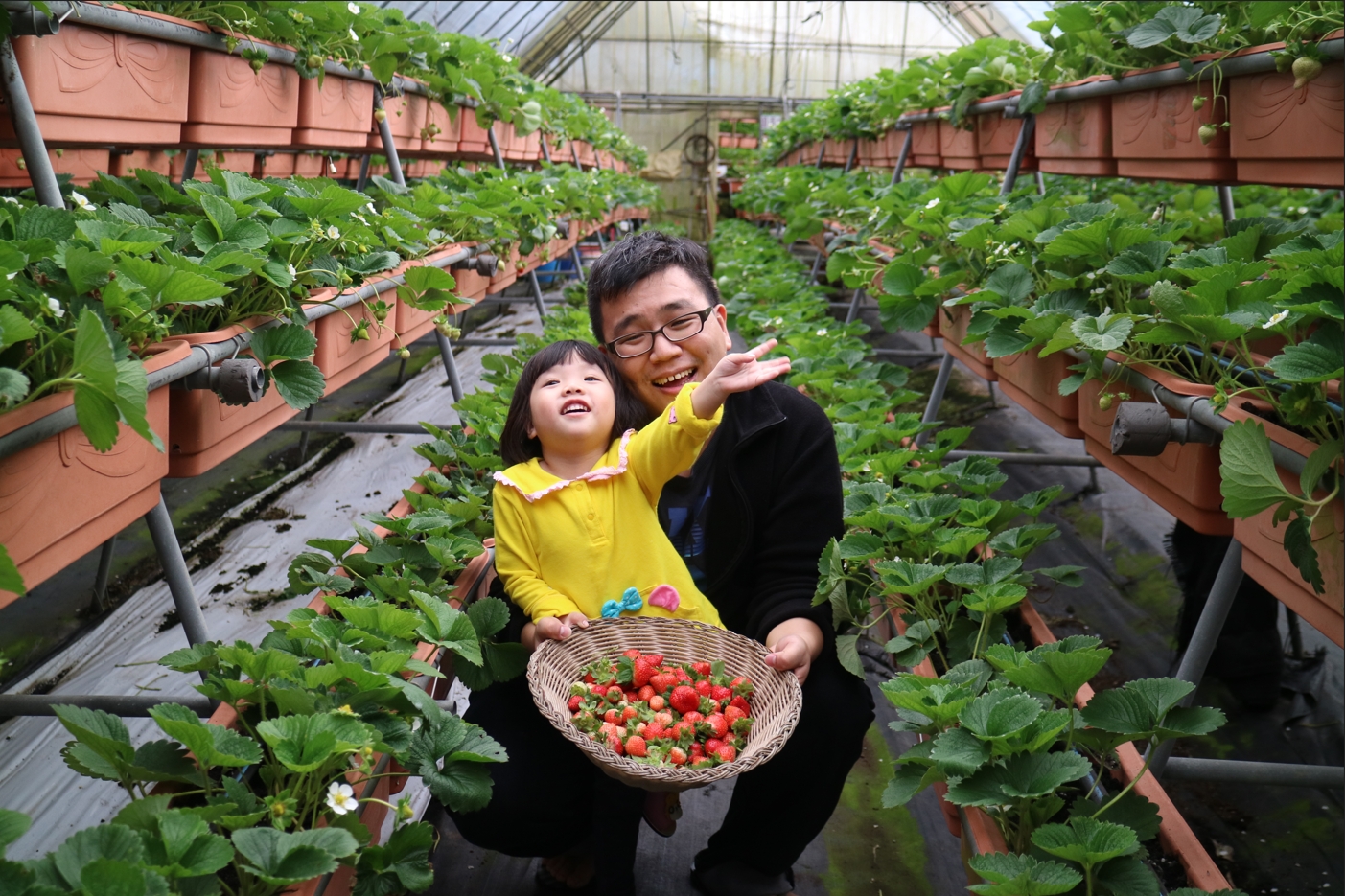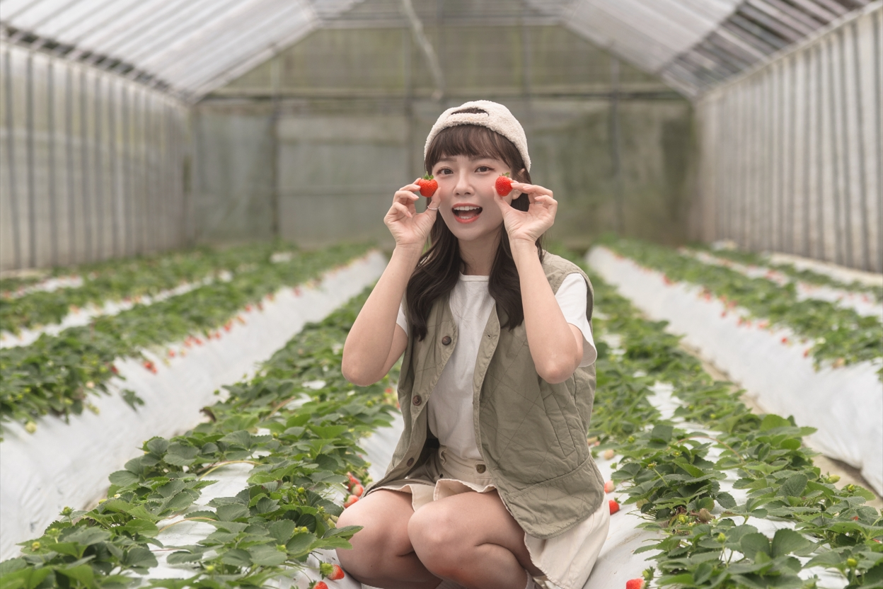 【精密製程般的有機守護】如果對「有機」有著高標堅持,「好上林」是首選。園主詹錫銘是半導體工程師退休,他將科技業解決問題的邏輯如良率優化、流程控管等應用於農業,以科技思維管理將草莓園打造得如同精密實驗室般乾淨。這裡主要採溫室高架種植,不僅走道寬敞乾淨,連雨天都能輕鬆採果。園內品種豐富,除了香水,更有夢幻的白草莓與帶著蜜桃香的「桃薰」。 最推薦的是園內的導覽與「草莓盆栽DIY」,園主會手把手帶領如何用生物防治解決病蟲害,讓孩子在採果之餘,也能帶回一盆屬於自己的小森林。