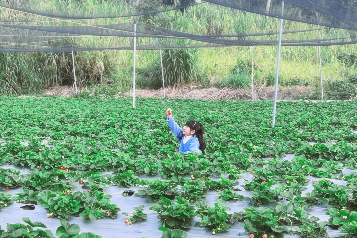 【遠眺101的草莓秘境】隱身在內湖白石湖吊橋後的「美麗田」,是內湖少數保有靜謐感的秘境果園。農園主人郭正勇採自然農法栽種,不噴灑農藥,強調與自然共生。最特別的是園區地勢較高,天氣好時採果還能一併遠眺台北101。美麗田採三層高架系統,穿著漂亮的高跟鞋也能優雅採果。除了鮮採草莓,農場的「草莓蜜地瓜」是一絕,用自家熬製的草莓醬搭配紅肉地瓜,是只有在這裡才吃得到的私房風味。
