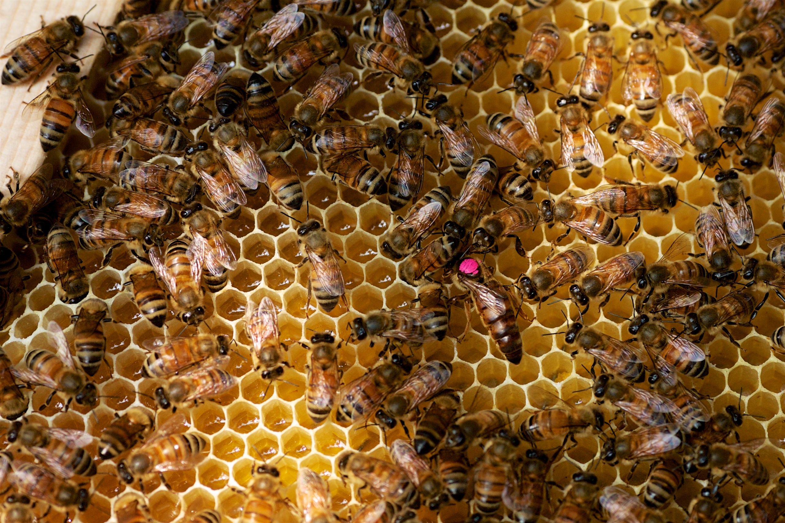 通常蜂農都會在冬末春初協助蜂群大量繁衍,把蜜蜂養得黃黃胖胖,這樣等到春季,蜂群就能有足夠的生產力大量採蜜採花粉,此時拜訪蜜蜂,經常可見它們兩隻後腿夾著兩坨大花粉團,搖搖晃晃飛回蜂箱,而且每隻都忙著工作與釀蜜,對於人類的騷擾靠近會覺得煩,但通常不會攻擊,而是傻乎乎的專心忙著儲蜜,模樣非常可愛。