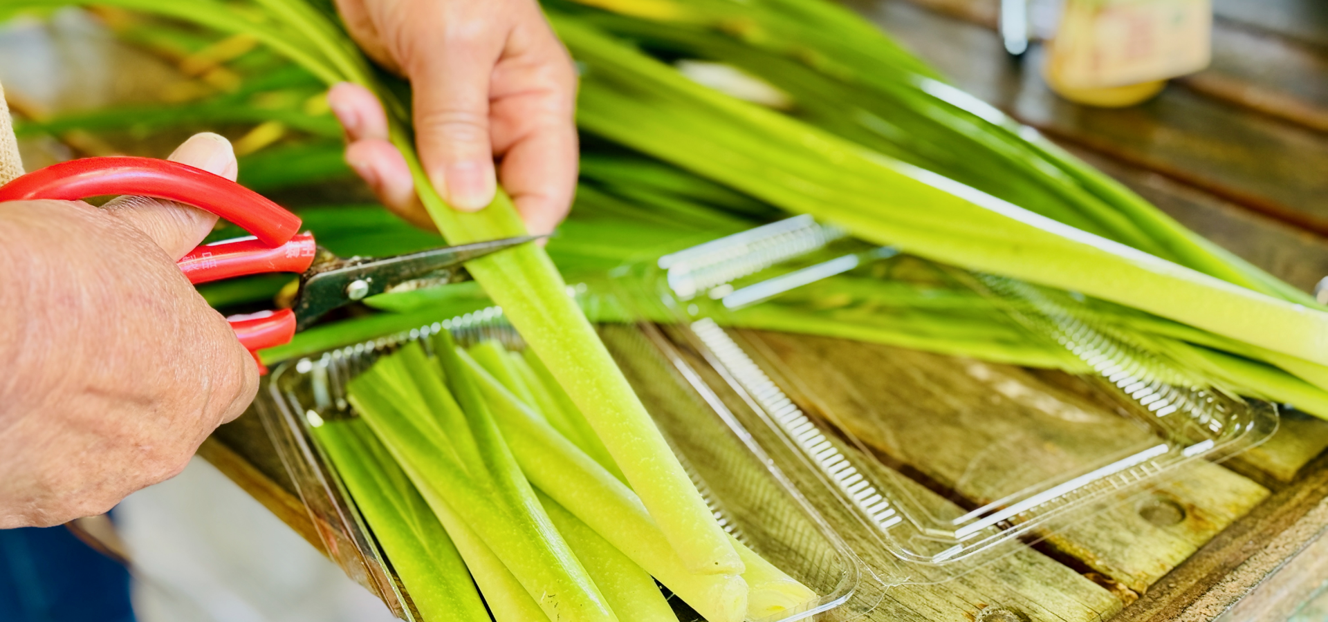 · 包裝碧玉筍 (修剪、包裝可帶回家料理的碧玉筍一盒)