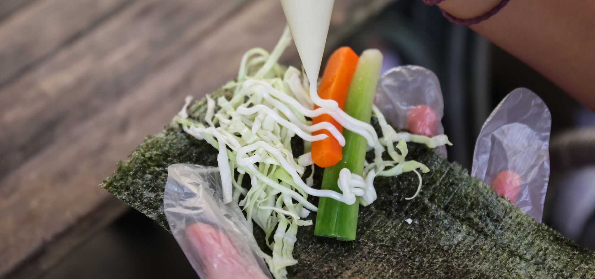 · 碧玉筍手卷DIY (碧玉筍搭配高麗菜絲、紅蘿蔔,DIY並品嘗碧玉筍手卷)