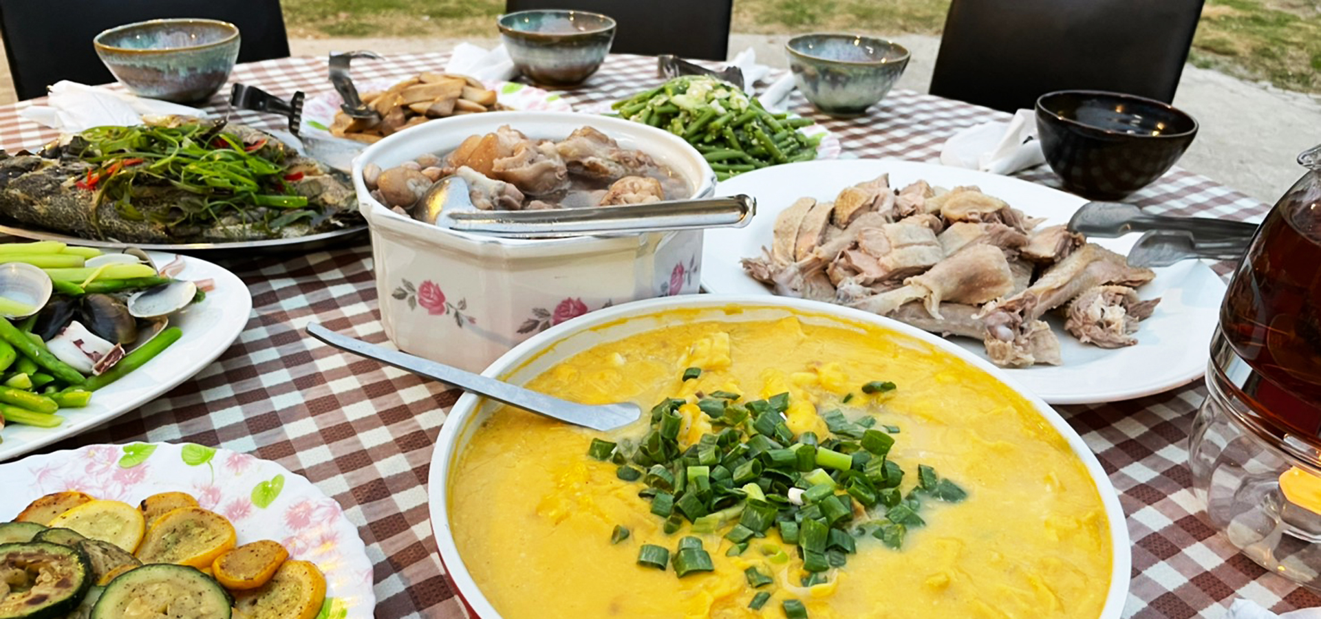 .24節氣風味餐-八菜一湯+水果+甜品(依節氣提供美食,採用在地菜農、果農新鮮在地食,由地方媽媽烹煮而成的少鹽、無糖、無味素餐點。)