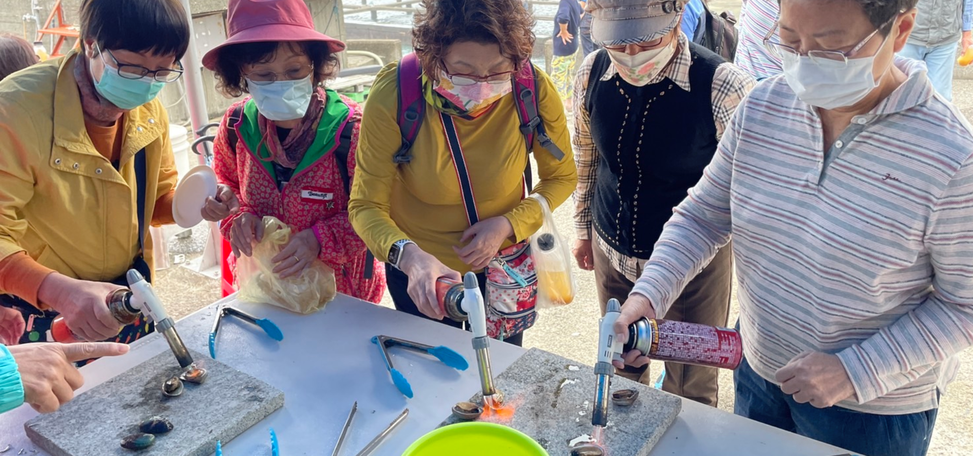 當地地形介紹+認識養殖物種(九孔、白蝦、海葡萄、海膽)+水中生物介紹+海菜餵食體驗+每人2顆九孔炙燒DIY及品嚐