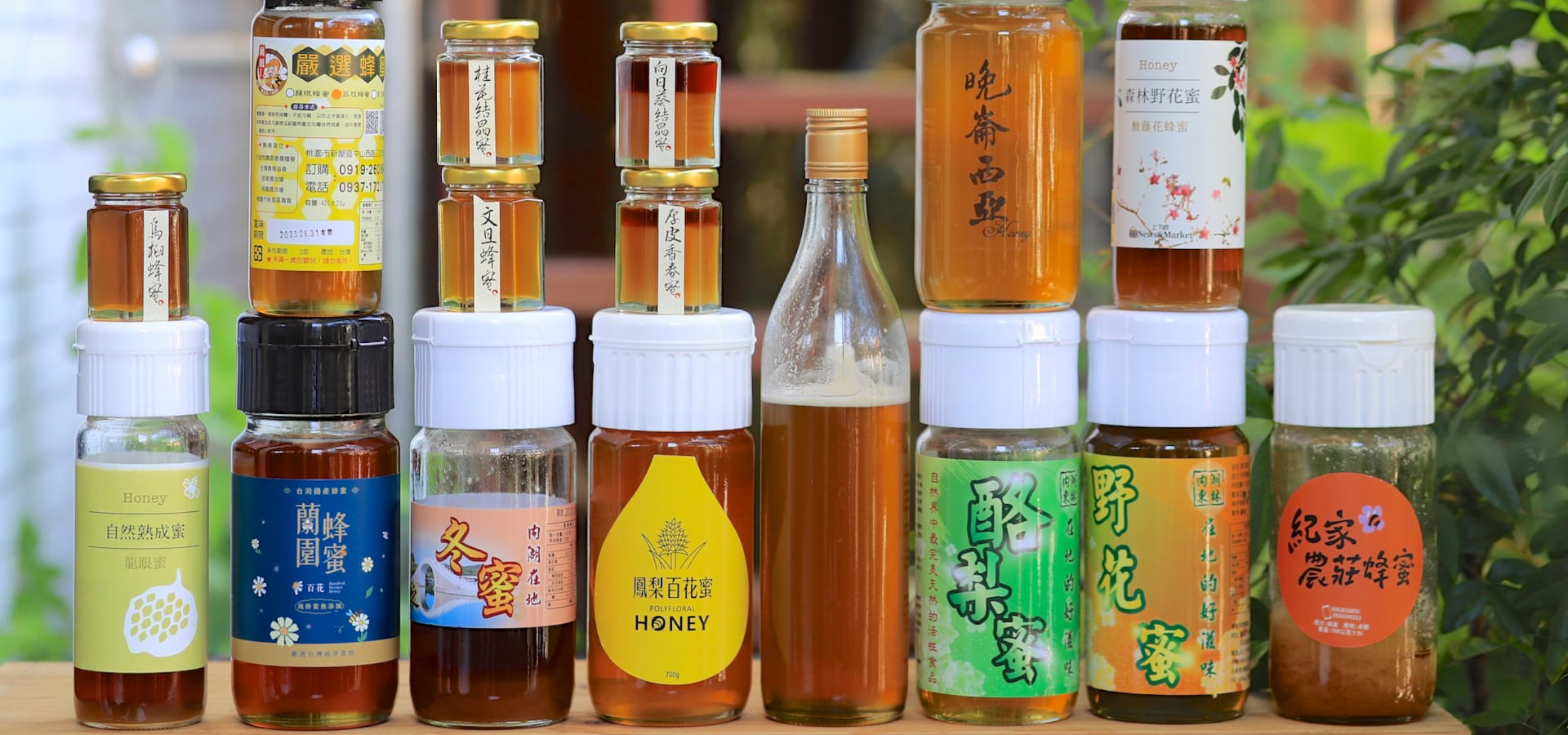 台灣的蜂蜜可以區分為果樹蜜(龍眼、荔枝、酪梨、柚子、柳丁、晚侖西亞….);森林樹木蜜(白千層、烏桕蜜、鴨腳木、紅淡比、水筆仔、酸藤、木棉、台灣欒樹、厚皮香….);花卉蜜(大花咸豐草、蕎麥、向日葵….)等種類,這些蜂蜜怎麼來的?在哪採的?滋味如何?
