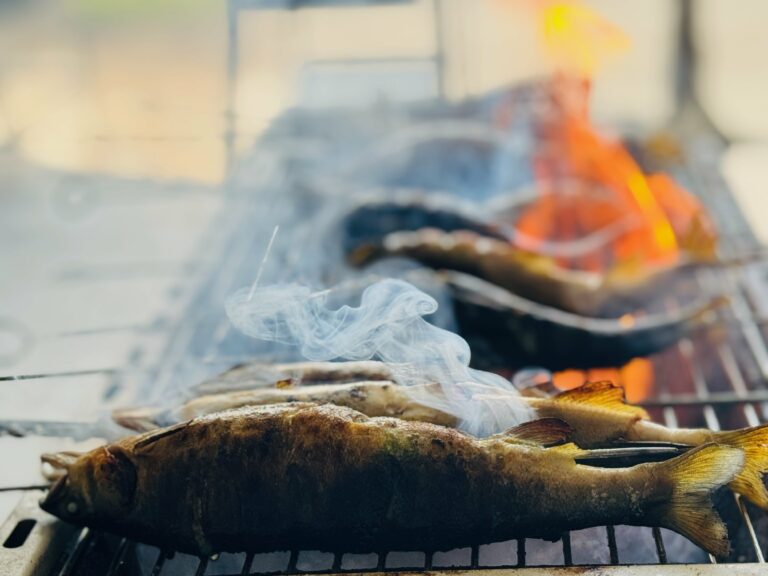 3. 享用鮮魚大餐:鹽烤香魚、炙燒鱘龍魚、莫瑞鱈魚湯、鱘龍魚香腸等美食。