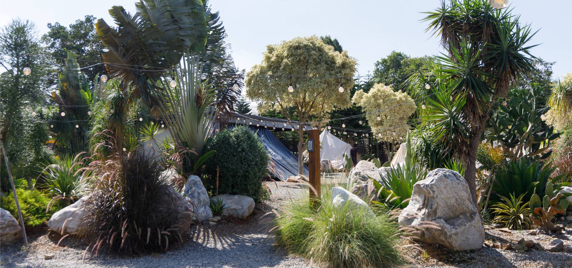 園區有著不同主題的風格地景,曠野沙漠、熱帶雨林、美式農村..讓你沈浸式的進入夢幻國度。園區由80位迴游青年共同打造,從生態復育、有機農業、可食地景、原野花藝、遊程服務都是一手包辦。在這不僅能夠享受「懶人熱泉露營」的服務,同時也有「特色主題單日遊程」:植感森林、生態美學、食農體驗、花系散策,甚至也幫小朋友舉辦各種營隊服務。